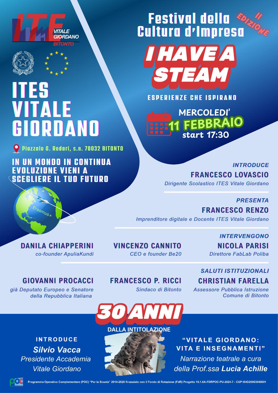 Vi aspettiamo numerosi per vivere un’occasione di confronto sulle opportunità imprenditoriali del territorio e celebrare, tutti insieme, il trentennale dell’intitolazione della nostra scuola a Vitale Giordano.