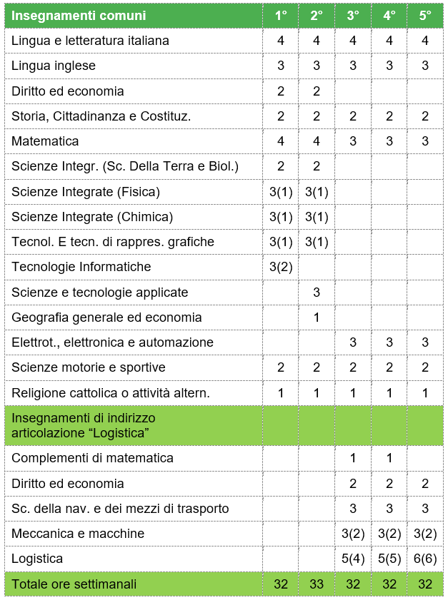 Indirizzo Trasporti e Logistica, articolazione Logistica